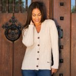 Cárdigan con botones, tajos laterales y trabajo de punto