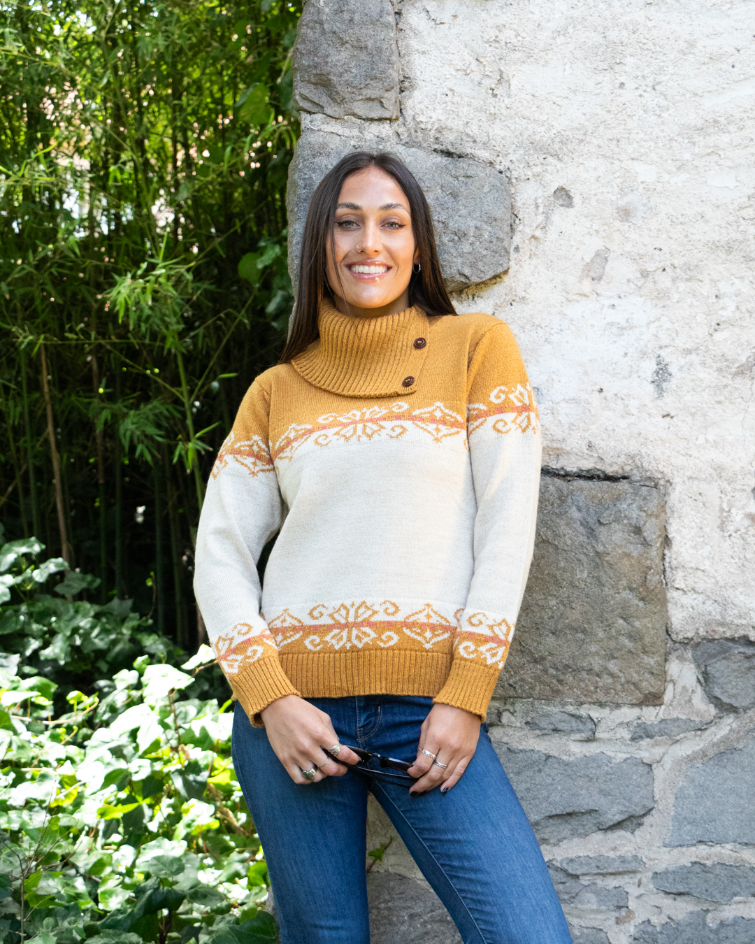 Cuello Volcado con dos botones, combinado en colores y guarda jackard