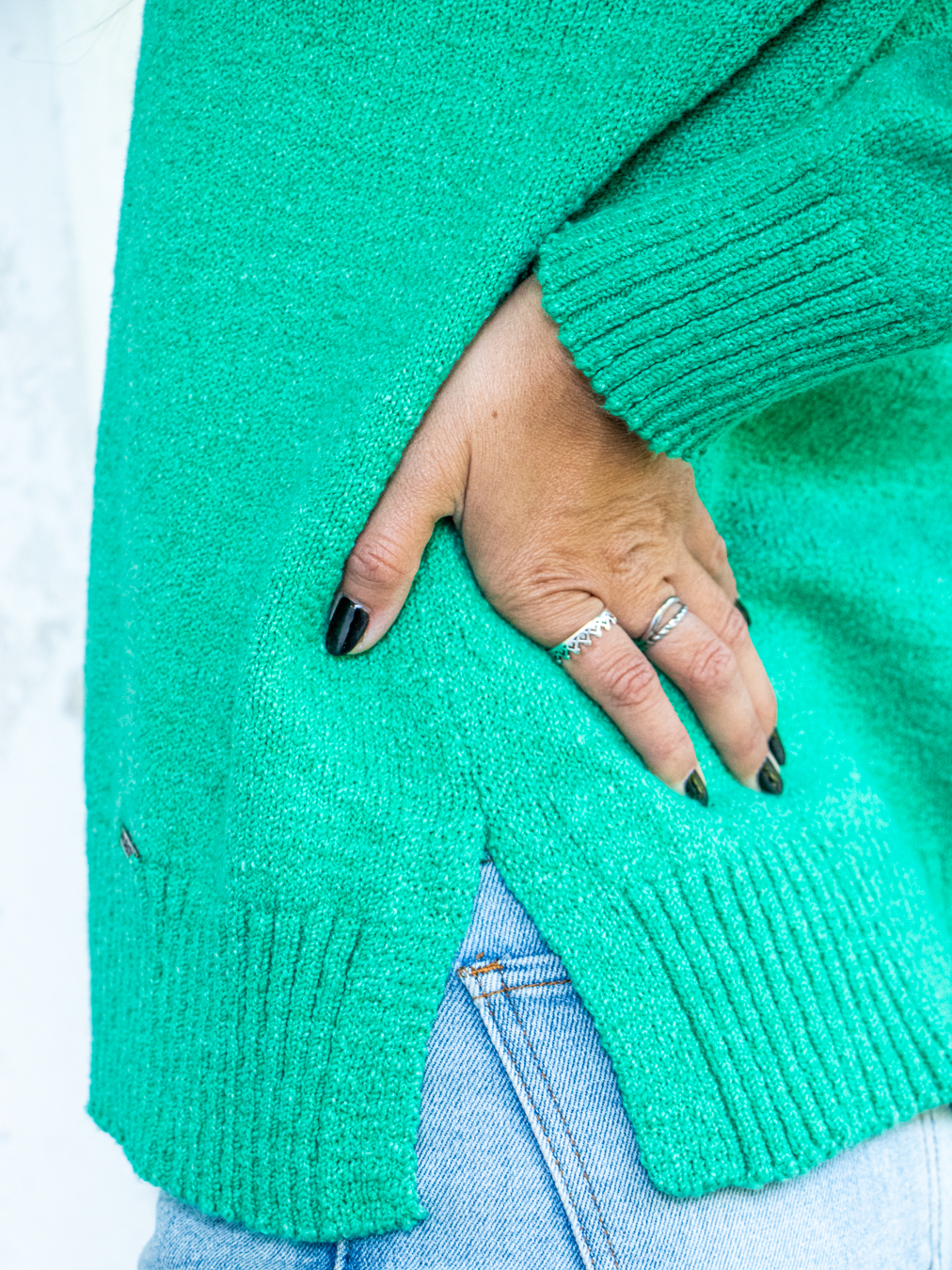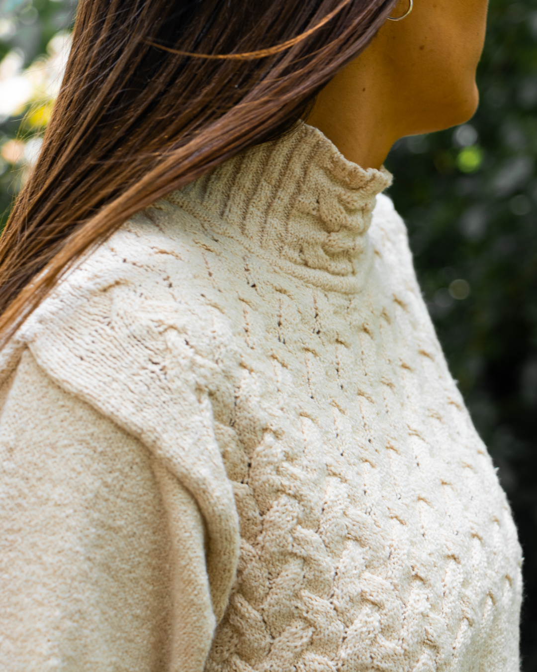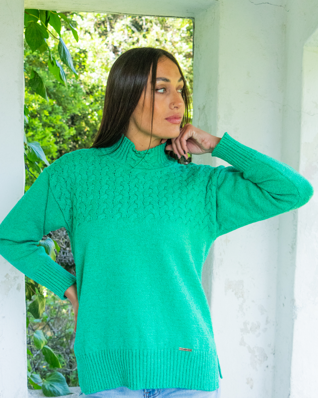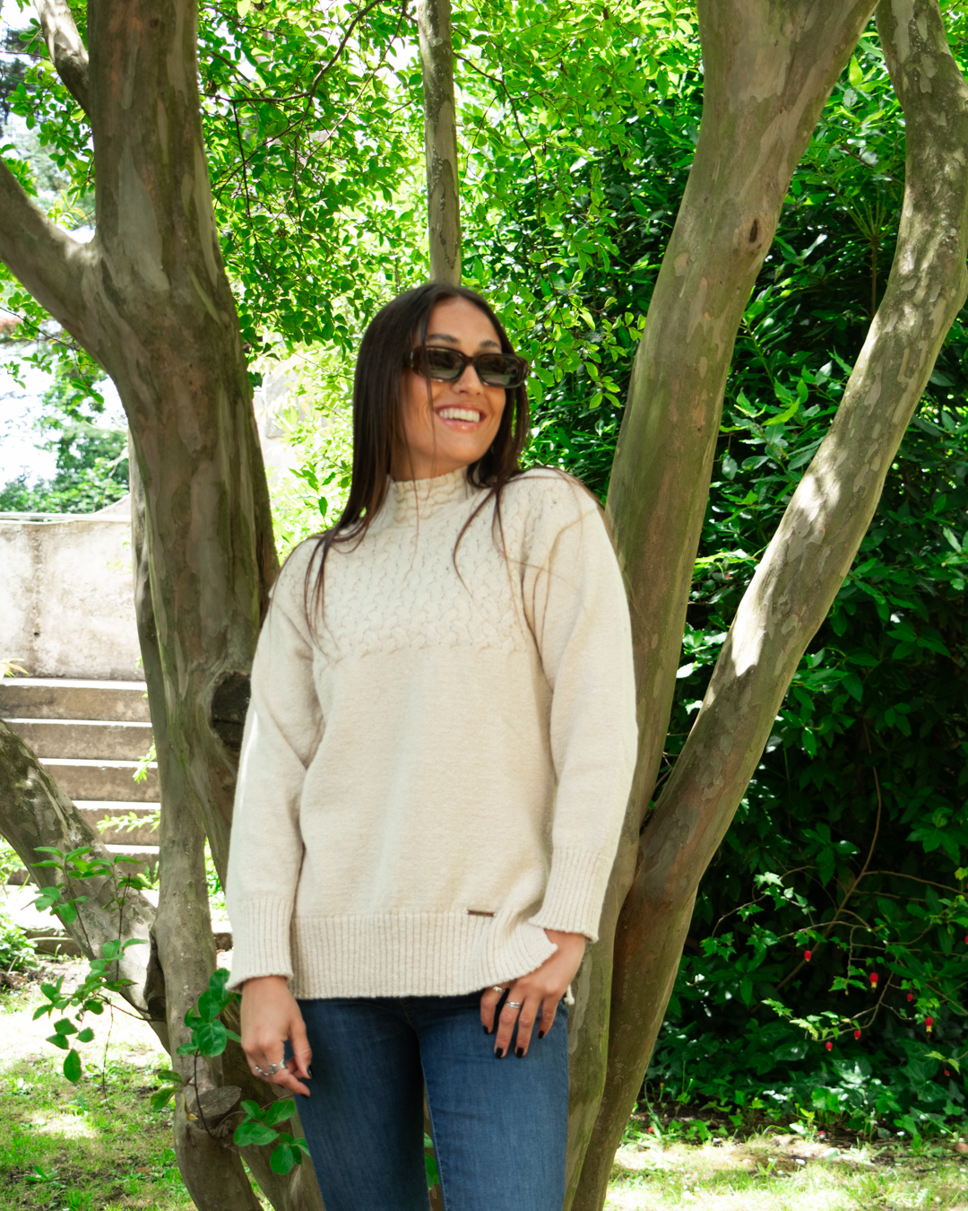 Media Polera con trabajo de trenzas en parte superior, posee tajos laterales.