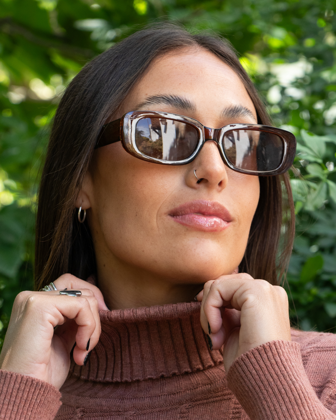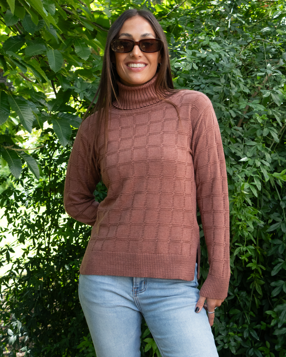 Polera Amapola con trabajo de cuadros y tajos laterales.